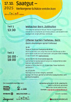 «Am Abend der Soliparty gibt es im Q-Gärtli wie jedes Jahr: wärme am Feuer mit Glühmost und Kürbissuppe, von 19 bis 23 Uhr, organisiert vom Q-Laden, DEINER rebellischen Bio-Oase.»